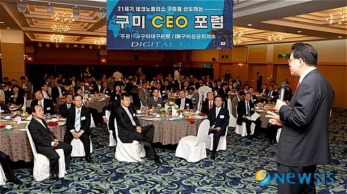 대구은행(은행장 하춘수)과 구미상공회의소(회장 이동수)는 7일 오전 구미 센츄리호텔에서 지역경제 활성화와 지역기업 경쟁력 강화를 위한 '구미 CEO포럼'을 개최했다.