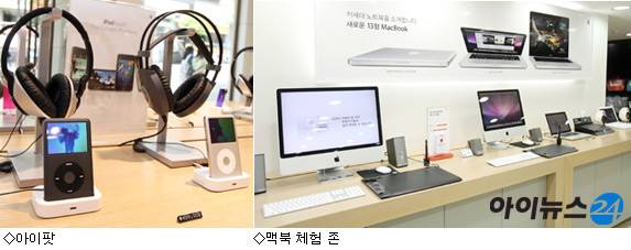 명동점이 패션의 거리 명동의 컨셉에 맞게 아이팟 제품을 부각시킨다면 홍대점은 그래픽 전문가가 많이 찾는 만큼 맥킨토시 위주로 지원한다는 게 매장측 설명이다.