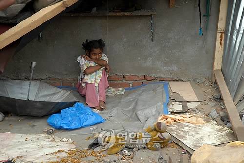 epa01730190 An Indian girl sits in her demolished shanty in Garib Nagar slums in Mumbai, India, 14 May 2009. Mumbai civic authorities demolished nearly 50 huts in a slum including the shanty of Azharuddin Mohammed Ismail, who acted in the Oscar-winning movie 'Slumdog Millionaire' by British director Danny Boyle. EPA/STR