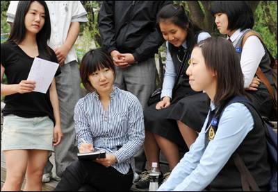 15일 오후 서울 관악구 서울대 교정의 학생회관 앞. 두 여학생이 처음 만나 어색한 듯 인사를 나누더니 이내 한 학생은 서고 다른 학생은 자리를 잡고 앉아 스케치북과 연필을 꺼내 든다.