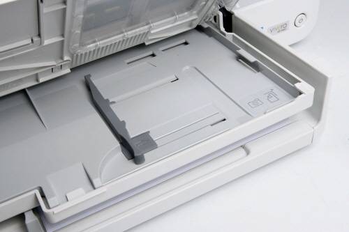 뒤에 숨겨진 후면 트레이. 포토 용지나 고급 용지 등 특별한 용지를 넣어서 이용한다. |