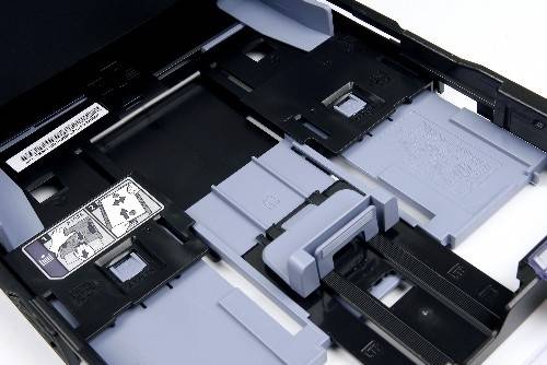 일반 용지와 사진 용지를 구분해서 넣을 수 있도록 용지공급 선반이 구별되어 있다. |