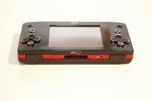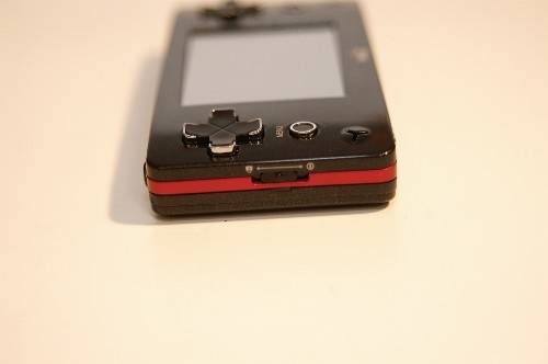 측면에는 전원과 홀드 기능을 가진 버튼과 분실을 막기 위한 핸드스크립 홀이 위치해 있다. 전원버튼은 슬라이드 타입으로 밑으로 살짝 내리면 전원이 ON/OFF 되며 버튼 밑으로 LED가 있어 전원 상태를 확인 할 수 있다. 하지만 이 전원키의 경우 NDS와 달리 손톱을 이용해야만 사용을 할 수 있다. NDS와는 게임기를 잡는 형태가 달라서이긴 하지만 다소 불편함을 느낄 수 있는 부분이다.