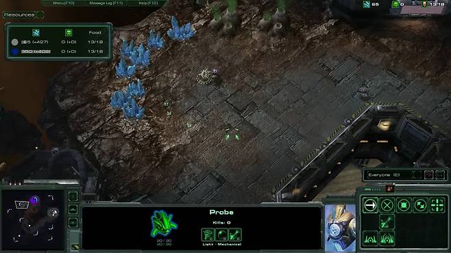 우선 프로토스는 경기 초반 다크 파일런을 사용해 보다 많은 자원을 채취하고, 초반 저글링 러시를 무화기(Nullifier)의 역장(Force Field)을 사용하는 공격과 수비를 선보였다. 이후 프로토스가 옵저버가 등장하기 전, 맵에 존재하는 감시탑을 활성화해 시야를 확보하는 것도 확인할 수 있었다.