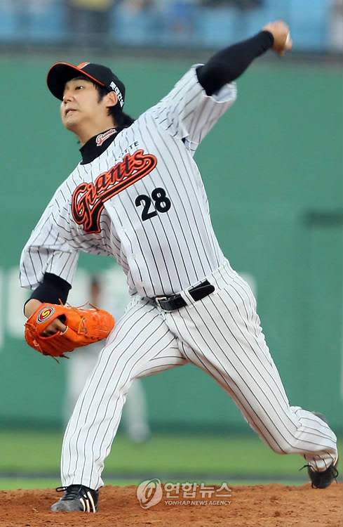 (부산=연합뉴스) 김선호 기자 = 19일 부산 사직야구장에서 열린 프로야구 롯데 대 기아의 경기. 롯데 선발 장원준이 기아 타선을 맞아 역투하고 있다. 2009.6.19