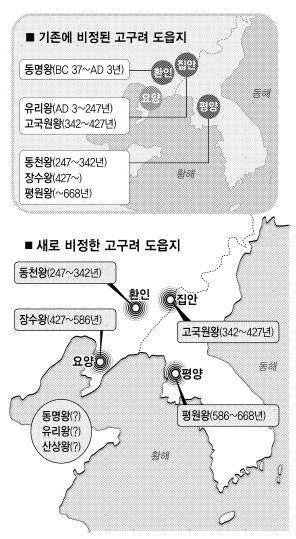 '삼국사기'기록에 따르면 고구려는 도읍을 모두 8곳에 정했다. 동명왕때 졸본, 유리왕(2대)때 국내성, 산상왕(10대)때 환도, 동천왕(11대)때 평양에 도읍을 정했고, 이어 고국원왕(16대)때 환도산성과 평양 동황성, 장수왕(20대)때 평양, 평원왕(25대)때 평양 장안성으로 옮겼다. 그런데 1940년대 고구려 도읍지를 처음 비정한 일본 학자들은 동명왕때 졸본을 환인으로 확정했고, 유리왕부터 장수왕까지의 도읍지를 집안의 국내성으로, 그리고 장수왕부터 평원왕까지의 도읍지를 평양으로 구분했다. 8곳을 3곳으로 좁혀 파악한 일본 학자의 연구결과는 우리 학계에 그대로 전수됐다.