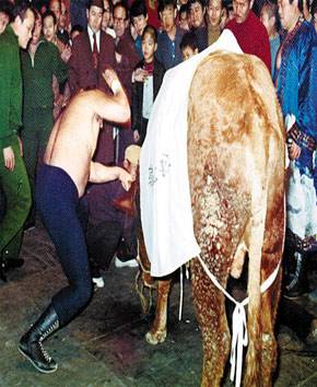 ■ 맨손으로 황소 3마리를 잡다