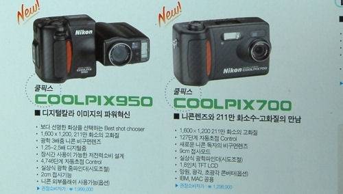 ■ 콤팩트 카메라도 100만원 넘던 시절당시엔 콤팩트 디지털 카메라 가격도 만만치 않았다. 100만 화소 미만 제품이 보급형으로 불리던 시절이었고 1600×1200 대형 이미지를 뽑아내는 200만 화소짜리 제품은 전문가용으로 불렸다. 니콘의 쿨픽스 950 가격은 199만 9,000원이었다.