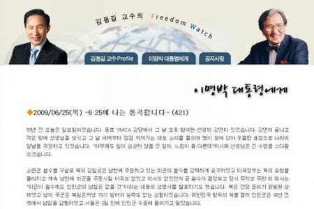 김동길 교수는 6.25 59주년을 맞아 25일 자신의 홈페이지에 올린 '이명박 대통령에게 - 6.25에 나는 통곡합니다'라는 글을 통해 "김대중은 어마어마한 액수의 달러를 가지고 북을 방문해 김정일을 껴안고 대한민국 분해공작에 착수했다 해도 과언은 아니다"고 김 전 대통령을 비난했다.