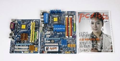 케이스와 메인보드 크기 비교4개의 케이스를 모아놓고 크기 비교 사진을 찍었다. 케이스는 왼쪽부터 빅 타워, 미들 타워, 슬림, 미니 타워로 규격에 따라 크기가 확연하게 차이가 나는 것을 알 수 있다. 메인보드는 mATX와 ATX. 그리고 PC사랑 5월호 잡지로 크기를 비교했다.