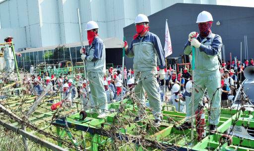 한편 경총은 파업공장 내에서 좌파 노동운동 세력들이 새총 모양의 볼트 투척기와 대통령과 정부를 비난하는 갖가지 욕설로 도배된 과녁판을 만들어 사용법을 교육하고, 해고 근로자들을 화염병, 쇠파이프, 소화기로 무장시켜 경찰과 조업을 희망하는 근로자들에게 위해를 가하는 훈련을 시키고 있다고 전했다. 아울러 각종 생산시설은 물론 완성차들을 이용해 바리케이트를 설치하고 공장을 요새로 만들고 있다고 설명했다.
