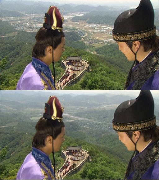 사극이나 시대극을 연출했던 PD라면 전기줄과 전봇대, 비닐하우스, 공장만 봐도 몸서리를 치기 마련. '선덕여왕' 제작진은 이런 고민을 CG로 말끔히 지웠다.