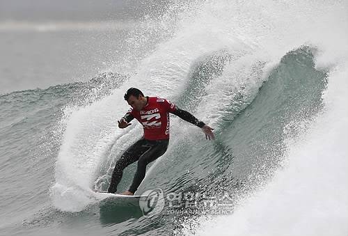 epa01794332 Current surfing World Championship Tour (WCT) leader Joel Parkinson from Australia surfs in a heat of the Billabong Pro 2009 surf contest in Jeffreys Bay, South Africa 14 July 2009. The world's top 44 surfers are competing at Supertubes in Jeffreys Bay, one of the longest and most perfect right-hand point breaks in the world, on leg five of the ten event World Championship Tour. EPA/NIC BOTHMA < 실시간 뉴스가 당신의 손안으로..연합뉴스폰 >< 포토 매거진 >< 저작권자(c)연합뉴스. 무단전재-재배포금지. >