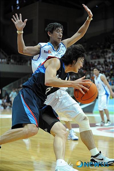 【타이페이(대만)=뉴시스】타이페이 신주앙 체육관에서 26일 열린 윌리엄존스배 국제농구대회 한국과 대만 대표팀의 경기에서 한국 강병현이 수비수를 재치며 드리블 하고 있다.