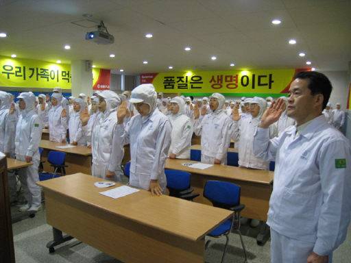 품질 클레임 제로(0)라는 목표를 설정하고 품질궐기 대회도 정기적으로 개최하고 있다. 박철오 진천공장 현장연구센터장은 "품질궐기 대회를 통해 식품안전 의식을 고취했다"면서 "그만큼 식품안전에 직원 전체가 품질 안전을 위해 노력하고 있다"고 했다.
