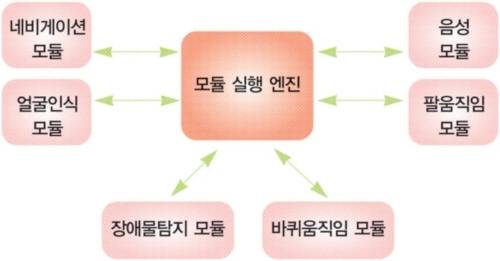 지금까지 설명한 모듈들은 c/c++과 같은 범용 프로그래밍 언어로 주로 작성된다. 우리는 얼굴인식 모듈로부터 어떤 사람이 인식되었는지에 대한 정보를 얻은 다음에 음성 모듈을 통해서 '안녕하세요'라는 인사를 하는 작업을 수행하는 모듈을 실행엔진에 추가할 수 있다.