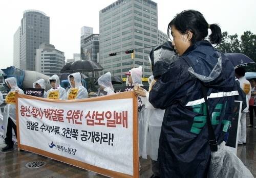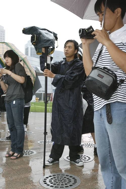 < 촬영도 몸이 유연해야 한다? >5시 15분. 5시에 시작하려던 행사가 비 때문에 조금 늦어졌다. 집회에 모인 사람들은 3발자국 걷고 한 번씩 절하며 시청 광장을 돌았다. 그들이 절할 때 마다 크롬도 카메라를 들고 뒤로 3발 걷고 한번 쭈그려 앉기를 반복한다. 웬만한 유연성 없으면 촬영하기도 힘들겠다.