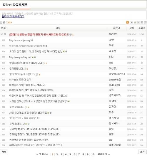 < 실시간으로 뜨는 영상 >다음팟과 아프리카에 실시간으로 생중계되어 나오던 영상. 칼라TV의 서버로는 시청자를 감당할 수가 없어서 아프리카, 다음팟과 함께 생중계를 한다. 아무런 편집 없이 전달되는 생생한 영상이다.