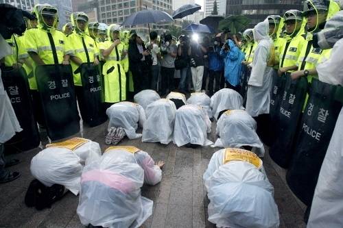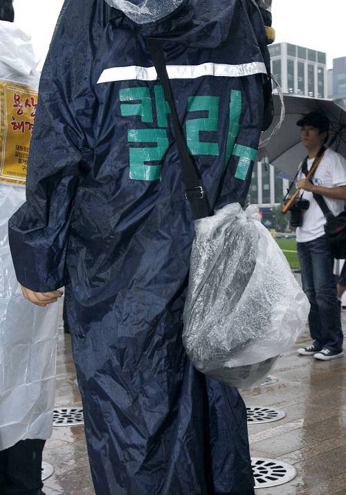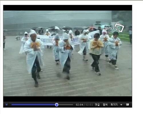 < 촬영도 몸이 유연해야 한다? >5시 15분. 5시에 시작하려던 행사가 비 때문에 조금 늦어졌다. 집회에 모인 사람들은 3발자국 걷고 한 번씩 절하며 시청 광장을 돌았다. 그들이 절할 때 마다 크롬도 카메라를 들고 뒤로 3발 걷고 한번 쭈그려 앉기를 반복한다. 웬만한 유연성 없으면 촬영하기도 힘들겠다.