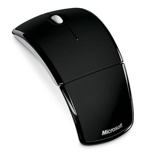 마이크로소프트 아크 마우스'아크' 마우스를 처음 보면 센서가 어디에 있는지 궁금해진다. 바닥이 평평한 일반 마우스와 달리 초승달 모양처럼 생겼는데 쓰지 않을 때는 반으로 접어서 가지고 다닐 수 있어 PC보다 노트북에 더 잘 어울린다. 아크 마우스는 쓸 때는 보통 마우스처럼 편하게 쓰다가 이동할 때는 접어서 보관할 수 있어 가지고 다니기 편하다.