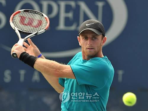 epa01847880 Jesse Levine of the US hits a return against Marin Cilic of Croatia during the fifth day of the 2009 US Open Tennis Championship at the USTA National Tennis Center in Flushing Meadows, New York, USA 04 September 2009. The Open runs through 13 September 2009. EPA/JASON SZENES < 실시간 뉴스가 당신의 손안으로..연합뉴스폰 >< 포토 매거진 >< 저작권자(c)연합뉴스. 무단전재-재배포금지. >