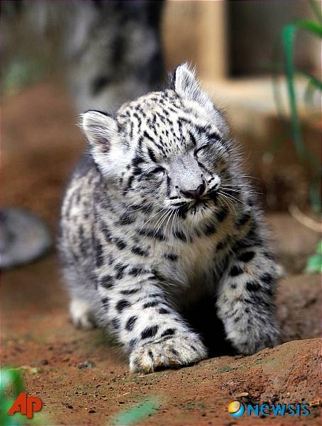 【도쿄(일본)=AP/뉴시스】4일 일본 도쿄의 타마 동물원에서 일반에 공개된 생후 두달된 새끼 설표 '유키치'가 졸면서 걷고 있다.