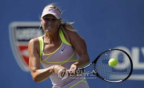 epa01849202 Maria Sharapova of Russia hits a return shot to Melanie Oudin of the US during the sixth day of the 2009 US Open Tennis Championship at the USTA National Tennis Center in Flushing Meadows, New York, USA, 05 September 2009. The Open runs through Sunday 13 September 2009. EPA/ANDREW GOMBERT < 실시간 뉴스가 당신의 손안으로..연합뉴스폰 >< 포토 매거진 >< 저작권자(c)연합뉴스. 무단전재-재배포금지. >
