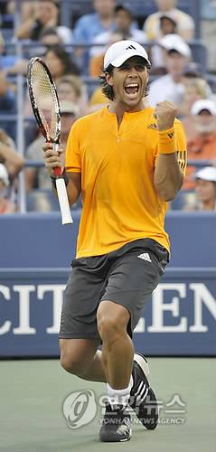 epa01849699 Fernando Verdasco of Spain celebrates his win over Tommy Haas of Germany during the sixth day of the 2009 US Open Tennis Championship at the USTA National Tennis Center in Flushing Meadows, New York, USA 05 September 2009. The Open runs through Sunday 13 September 2009. EPA/JOHN G. MABANGLO < 실시간 뉴스가 당신의 손안으로..연합뉴스폰 >< 포토 매거진 >< 저작권자(c)연합뉴스. 무단전재-재배포금지. >