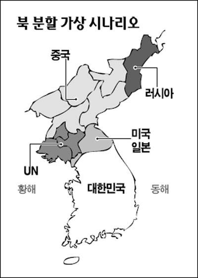 이에 따르면 미 국방부는 미셸 플러노이 정책담당 차관의 지휘로 미국이 조만간 직면할 대외위협을 11가지 시나리오로 가정해 이를 5개 이슈팀이 나눠 보고서를 작성하고 있다. 제1이슈팀은 미국 주도로 이뤄지는 국가재건작전 시나리오 네 가지를 검토하고 있는데 이중 하나가 북한의 정권붕괴 상황을 가정한 시나리오 작업으로 나타났다. 나머지는 아프가니스탄과 이라크에서 미국의 작전, 파키스탄의 핵 위협 등에 대한 시나리오 작업이다.