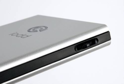 iODD의 겉모습은 여느 외장 하드디스크와 크게 다르지 않다. 2.5인치 하드디스크를 담을 정도의 크기에 가운데는 로고가 자리 잡고 있다. 고급스러운 느낌의 케이스는 알루미늄 재질로 만들었고 열을 잘 식힌다.