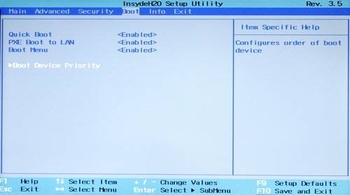 4. PC를 부팅할 때 Del 키나 F2 키를 눌러 바이오스 설정 메뉴로 들어간다. 바이오스 화면에서 [boot]를 골라 [부트 디바이스 프라이오리티(Boot Device priority)] 를 고른다. 메인보드 제조사에 따라 메뉴가 다르므로 '부트(boot)'라는 글자가 들어간 메뉴를 찾는다.