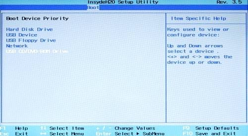 5. PC가 부팅할 때 읽어 들어는 장치 순서다. [USB CD/DVD-ROM Drive]를 골라 + 키를 눌러 맨 위로 올리고 바이오스 설정을 저장한다. PC를 재부팅하면 iODD로 설정한 ISO 이미지를 읽어 부팅이 된다.