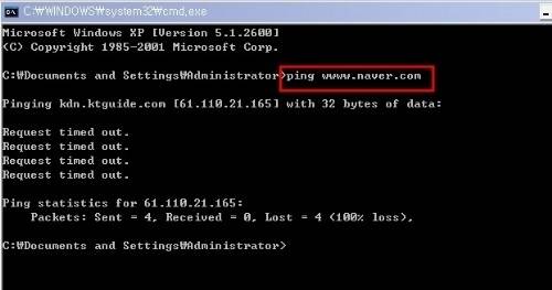또 다른 포털인 다음( www.daum.net)에 ping 테스트해 보았지만 역시 답변이 없었습니다. 포털사이트가 보안 요소를 강화하기 위하여 ping을 막아 놓은 모양입니다.