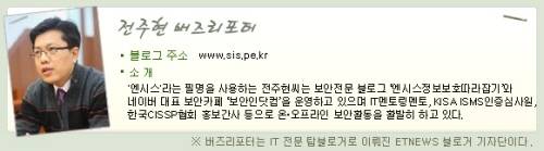 [ 관련기사 ]▶ 한국인터넷진흥원, 지방지사 설립은 어떨까?▶ 정보보호관리체계 인증 심사, 어떻게 진행되나?▶ 블로그 운영도 이젠 서비스다▶ 초보를 위한 PC 안전 확인법전주현 버즈리포터(www.sis.pe.kr)'IT 제품의 모든것'-Copyright ⓒ ebuzz.co.kr, 무단전재 및 재배포 금지