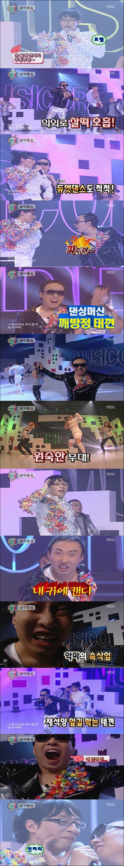 [뉴스엔 윤현진 기자]개그맨 유재석과 박명수가 '내 귀에 캔디' 무대를 완벽하게 패러디했다.10월 10일 방송된 MBC '무한도전'은 지난주 추석특집으로 마련된 '무한도전 TV' 2탄이 방송됐다. '무한도전 TV'는 '무한도전' 멤버들이 하루종일 TV에 나온다는 콘셉트로 진행돼 MBC에서 방영되는 프로그램들을 직접 패러디하는 코너들로 구성됐다.