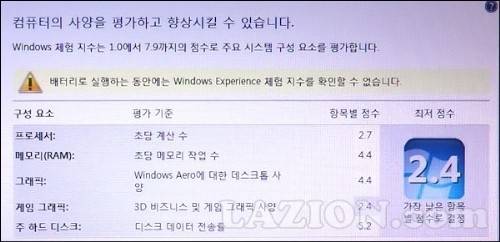 아톰에 대한 일반적인 인식과 다르게 체감 성능으로는 상당히 쓸만했습니다. 이는 윈도7에 최적화된 드라이버 및 소프트웨어 덕도 있을 것이지만 2GB 기본 메모리와 함께 고속 SSD가 차지하는 부분이 더 클 것이라 생각합니다.