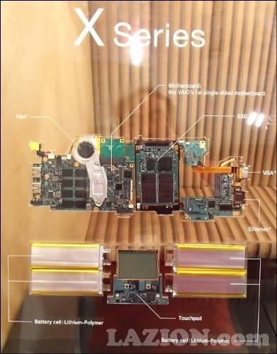 바이오X 시리즈의 특징 가운데 하나가 바로 배터리입니다. 3종류인데 용량에 따라 나뉩니다. 리튬 폴리머 방식으로 각각 2셀, 4셀, 8셀인데 그 중 4셀 VGP-BPL19가 우리나라 출시판에 기본으로 들어갑니다. 구조적인 문제인지 배터리 셀은 양쪽으로 나뉜 형태입니다.