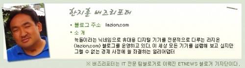 [ 관련기사 ]▶ 국내 넷북 시장, 가격 경쟁 시작되나?▶ 가벼워서 좋다, 모토로라 블루투스 이어셋 H790▶ MP3P답지 않은 멋진 스피커 갖춘 신형 워크맨▶ 노트북 두께가 13.9mm? 소니 바이오X이버즈 트위터에 추가하기한지훈 버즈리포터(http://lazion.com)'IT 제품의 모든것'-Copyright ⓒ ebuzz.co.kr, 무단전재 및 재배포 금지