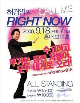 지난 9월18일 허경영씨는 홍대브이홀에서 단독콘서트를 열었다. '라잇나우(Right Now)'라는 제목의 콘서트였다. 콘서트는 성황리에 종료됐다. 이 공연의 기획은 탁현민 한양대 겸임교수가 대표를 맡고 있는 홍보기획사 P당이 맡았다. 탁 교수는 언론매체 기고에서 '허경영 신드롬'에 대해 이렇게 말했다. "허경영 신드롬의 배경은 대중의 자기기만과 정치 및 현실에 대한 키치이거나 유머 또는 무질서를 통해 전통적 가치를 전복시키고 해방시키는 카니발레스크에 다름 아니다. 당사자인 대중과 허경영 모두 짐짓 모른 체하고 있기는 하지만 말이다." 허경영 측은 이날 공연수익 가운데 200만원을 용산참사 범국민대책위원회에 전달했다. 탁 교수는 "굳이 공연의 수익금을 용산 참사 유가족에게 기부하겠다고 한 것은 오늘 우리 시대의 아픔을 쳐다보지도 않는 저 고매한 정치인들에게 '허경영도 하는 위로를 끝내 못하느냐'고 따져 묻고 싶었다"고 말했다. 그는 이어 "음악성은 고사하고 립싱크조차 제대로 못 맞추는 허 총재의 공연을 통해 그의 음악이나 요즘 쏟아지는 대중음악이 별반 차이가 없음도 꼬집고 싶었다"고 공연 기획의 변을 밝혔다.