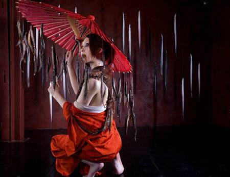 촬영 도중 다이키치는 죽음의 축제가 벌어지고 있는 일부 장면을 영원히 남기기 위해 사진들을 찍는다. 눈을 감은 여성, 뒤집어놓은 듯한 점막을 닮은 낙지들로 뒤덮인 여성들의 모습이 대상이다. 그들의 얼굴은 창자 색을 한 생선들로 가득 찬 늪에서 솟아오른 형상이다. 촉수들은 축축한 가슴을 칭칭 동여매고 있다. 사진들은 아름답다. 너무나 아름답기에 다이키치는 자신의 이름을 내세운 전시회를 열고 있다. 독일의 봉 구 갤러리는 그에게 멋진 회고전을 열어주면서 다음과 같이 극찬하고 있다. "아마노는 고대의 에로틱한 판화인 ?가(春畵)에 생명을 부여하면서 그것들을 재해석해 낸다. 육체로 구성된 이 이미지들을 제대로 감상하려면 유혹의 이상한 힘에 사로잡히지 않을 수 없다."