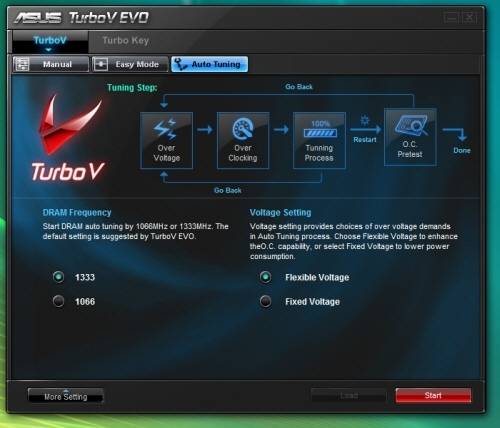 터보V 에보를 활용하면 오버클록이 어떻게 진행되는지 알 수 있어 유용하다. 클록과 전압의 변화를 알려주면서 자동 튜닝을 진행하고 클록을 조절할 때마다 안정성 테스트를 거치느라 시간이 조금 오래 걸리는 게 흠이다.
