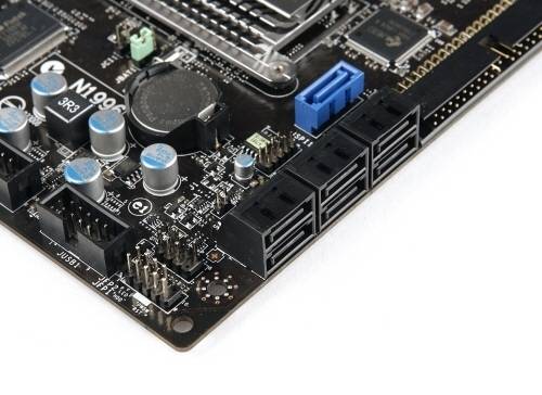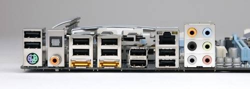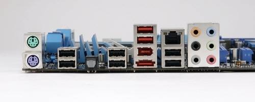 각종 포트를 고르게 배치하려고 애 쓴 흔적이 보인다. eSATA, IEEE 1394, 옵티컬 사운드, PS/2까지 거의 모든 입출력 단자는 다 찾아볼 수 있다.