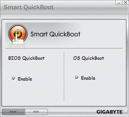 부팅할 때 하드웨어 감지 시간을 줄이는 바이오스 퀵부트와 절전 상태(S3, S4) 모드를 이용해 부팅 시간을 줄이는 OS 퀵부트, 두 가지 기능이 있다. 윈도 비스타의 절전모드를 활용한 기술이다.