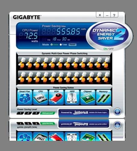 뛰어난 전력 절감 효과를 보여주는 다이내믹 에너지 세이버2기가바이트만의 기술인 다이내믹 에너지 세이버2(DES 2)는 CPU와 메모리, 칩셋, 그래픽카드, 하드디스크 등 PC의 주요 부품의 상태를 최적화해 전력 소모를 효율적으로 줄이는 기술이다.