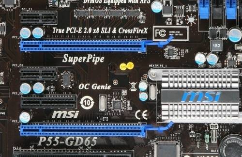 MSI P55-GD65는 크로스파이어X와 SLI 기술을 모두 쓸 수 있다. 이 때 각 슬롯은 x8 모드로 작동한다. |