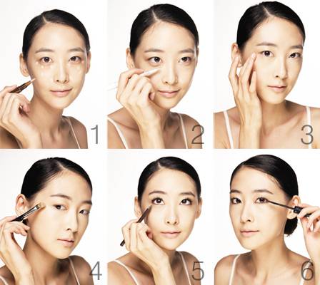 1_ 눈 밑 밝히기 다크서클을 커버할 때 가장 중요한 포인트는 눈 밑과 콧방울을 연결했을 때 생기는 역삼각형 부분, 일명 트라이앵글존을 환하게 밝히는 것이다. 피부보다 한 톤 밝고 수분감이 뛰어난 컨실러를 트라이앵글존에 넓게 펴 바른다. 이때 무거운 질감의 컨실러를 사용하면 눈 밑 주름이 도드라질 수 있으므로 주의할 것.