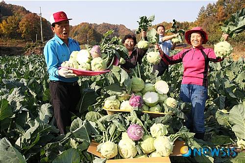 이 마을 최희천씨(82)씨는 4년 전 처음 2311㎡의 밭에 콜라비를 재배해 본격 수확철인 11월을 앞둔 요즘 출하에 여념이 없다.