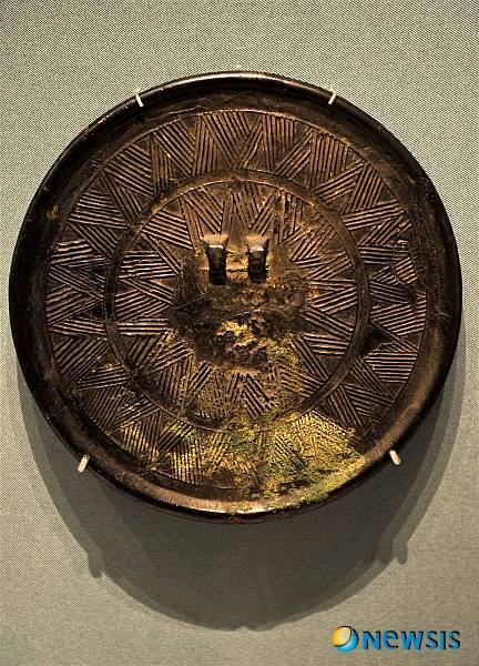 【서울=뉴시스】박주성 기자 = 2일 오전 용산구 용산동에 위치한 국립중앙박물관에서(관장 최광식) 고조선실 언론공개회가 열려 충남 아산 남성리 유적에서 발견된 거친무늬 거울이 전시되고 있다.