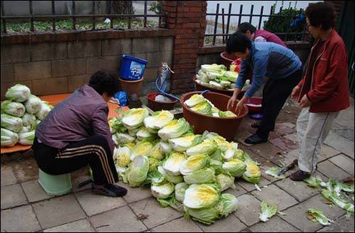 [오마이뉴스 김현자 기자]최근 서울시 농수산물공사는 올해 서울시 4인 가족 김장 비용이 11~12만원 정도 들 것이라고 발표했다. 농수산물공사에 따르면 김장 비용은 20포기(배추 20포기, 무 10개, 고추 3.4㎏, 마늘 2.9㎏, 파 1.2㎏, 생강 600g, 당근 1.2㎏, 굴 600g, 새우젓 2.9㎏, 소금 5.1㎏ 등의 10개 품목)기준이다. 이는 지난해 추산 12만∼14만원보다 10%가량 적은데, 농수산물공사는 그 이유로 "배추·무·젓갈류의 가격이 약세이고 쪽파와 고추의 가격이 안정됐기 때문"이라고 밝혔다.