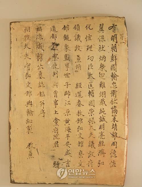 (천안=연합뉴스) 이우명 기자 = 도굴로 우여곡절을 겪었던 한명회(1415-1487) 지석(誌石)이 충남 천안박물관에 전시된다.